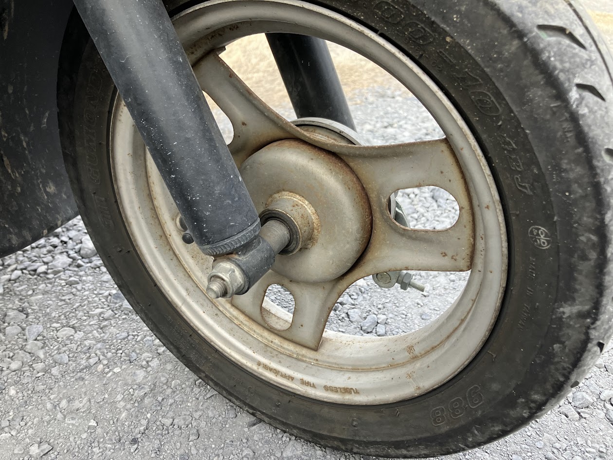 衝撃で歪んでしまったホンダDioのフロントホイール